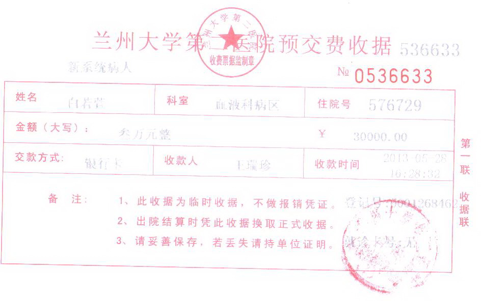 截止2013年5月28日“白若萱小朋友白血病医治捐助工作小组”捐助账户已经收到善款的37,598.00元。28日下午,根据需要捐助款30,000.00元打入兰州大学第二医院白若萱小朋友医疗账户,王小花同事方正税务师事务所武威分部同志捐助现金4500.00元,由武威分部主任李莲花一行5人亲自送往医院交予小若萱妈妈王小花。