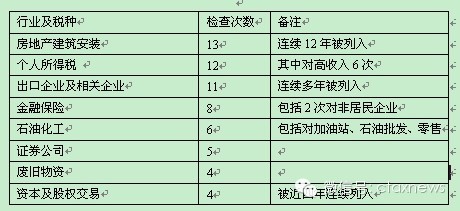 除此之外,我们对1997年以来,国家税务总局发布的税收专项检查方案进行分析发现,不少行业已经是多次“上榜”。