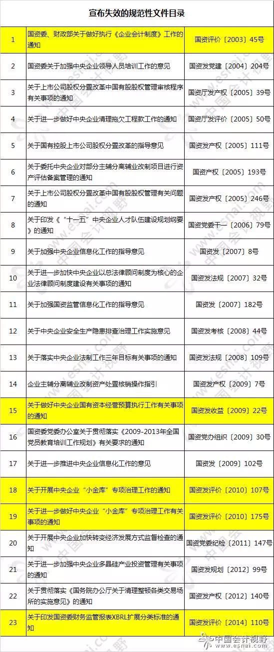 日前,国资委网站发布《关于废止和宣布失效部分规范性文件的公告》,废止和宣布失效31个规范性文件,其中8个文件被废止、23个文件被宣布失效。