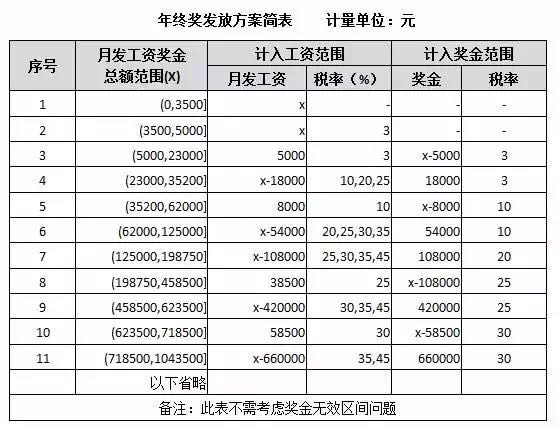 可以发现,当单位发给员工的年终奖为960001元时,会比发放960000元多交近9万余元的个人所得税。如果单位发放的年终奖处于上述盲区,单位可以并入工资或通过实物等其他福利形式发给员工,从员工角度而言,甚至可以通过与单位沟通,放弃部分年终奖,以取得实发金额最大化。