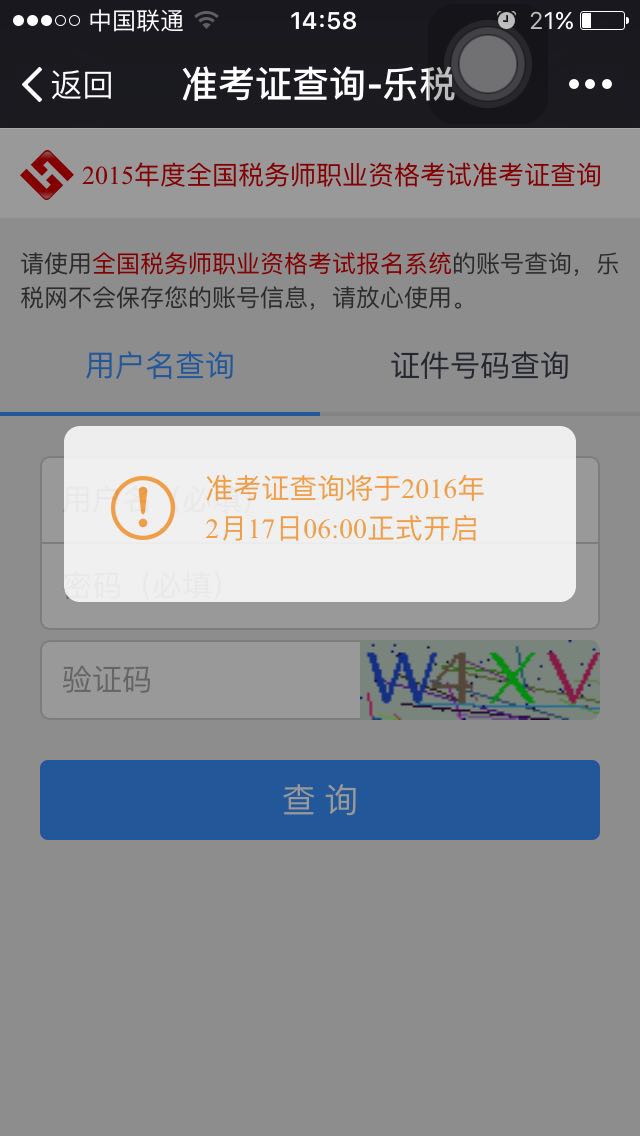 2015年税务师考试准考证打印时间自201621706:00起至2718:00
