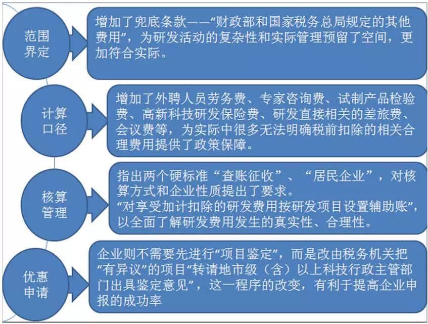 综上所述,这次的新政总体而言非常值得肯定。首先首先从逻辑上来说,从正面推定到反向列举的变化是这一政策的最大亮点之一。比如规定明确列举了不能加计扣除研发活动以及不适用加计扣除政策的行业。这为我们提供了明确的方向指标,解决了诸多旧政策中的模糊问题。