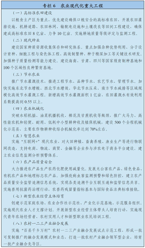 推动信息技术与农业生产管理、经营管理、市场流通、资源环境等融合。实施农业物联网区域试验工程,推进农业物联网应用,提高农业智能化和精准化水平。推进农业大数据应用,增强农业综合信息服务能力。鼓励互联网企业建立产销衔接的农业服务平台,加快发展涉农电子商务。