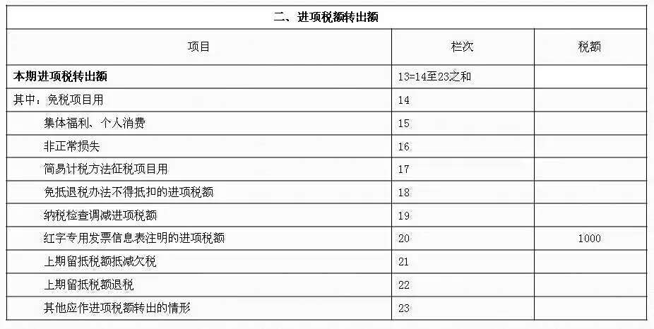 3、进项税转出=业务六=1000