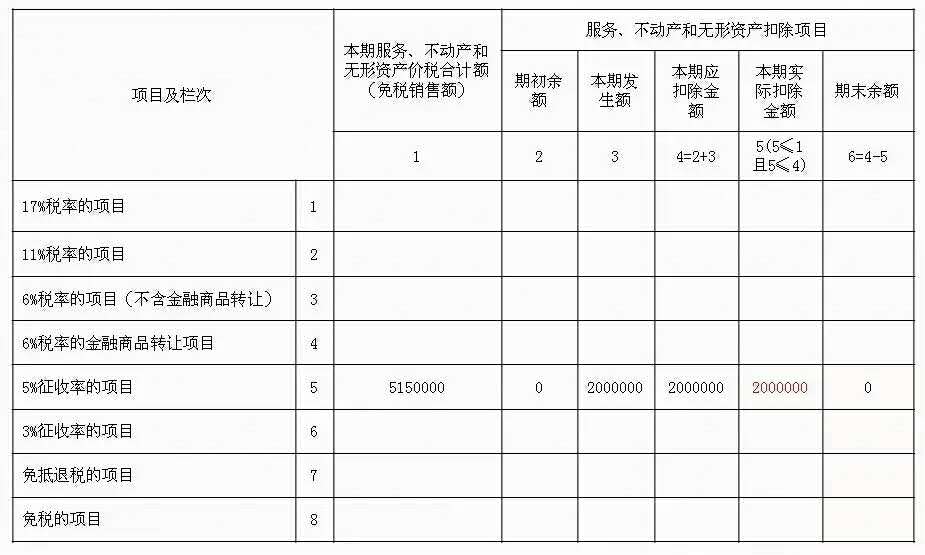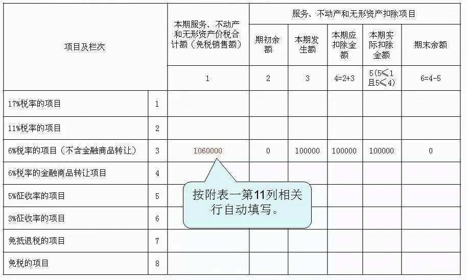 在“基础业务”的基础上,假设该企业有服务扣除项目情况: