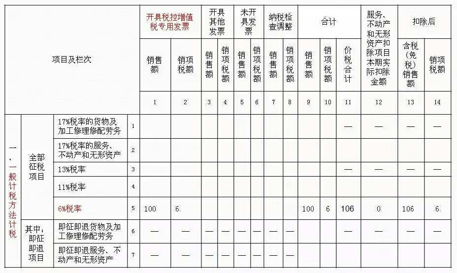 (一)一般计税方法的销售情况业务一:2016年5月16日,取得某项服务费收入106万元,开具增值税专用发票,销售额100万元,销项6万元;