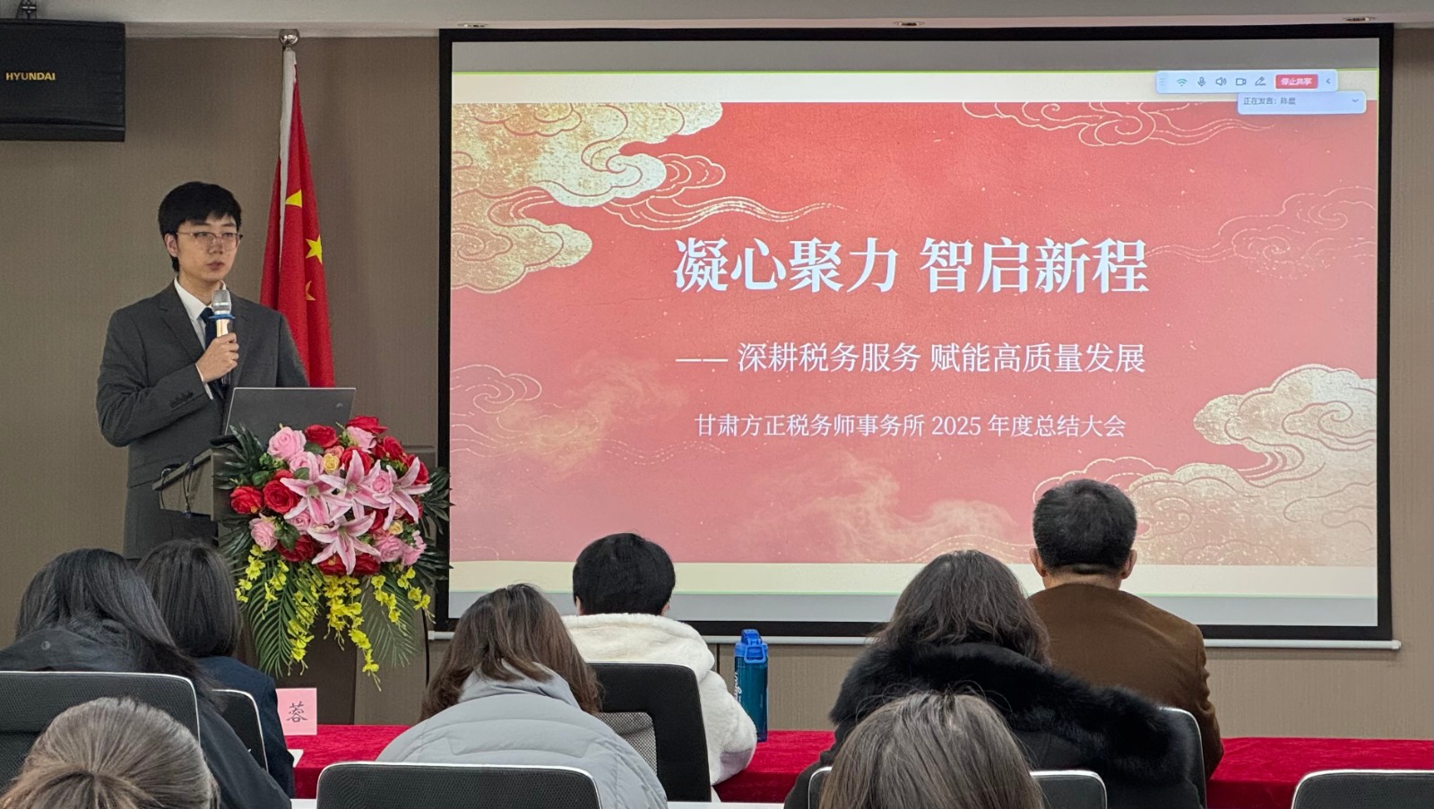岁序更迭,新程启幕。2月10日下午,我所2025年度总结会议暨迎新春年会隆重举行,全体员工齐聚一堂,以“凝心聚力,智启新程——深耕税务服务,赋能高质量发展”为核心主题,全面复盘2025年工作成果与不足,明确2026年核心发展目标,发布数智化转型、人才培养重磅举措,完成部门架构调整与主任聘任,表彰年度优秀集体与个人,为新一年发展凝心聚力、谋篇布局。本次会议由陈晨主持,事务所全体同仁共同参与。